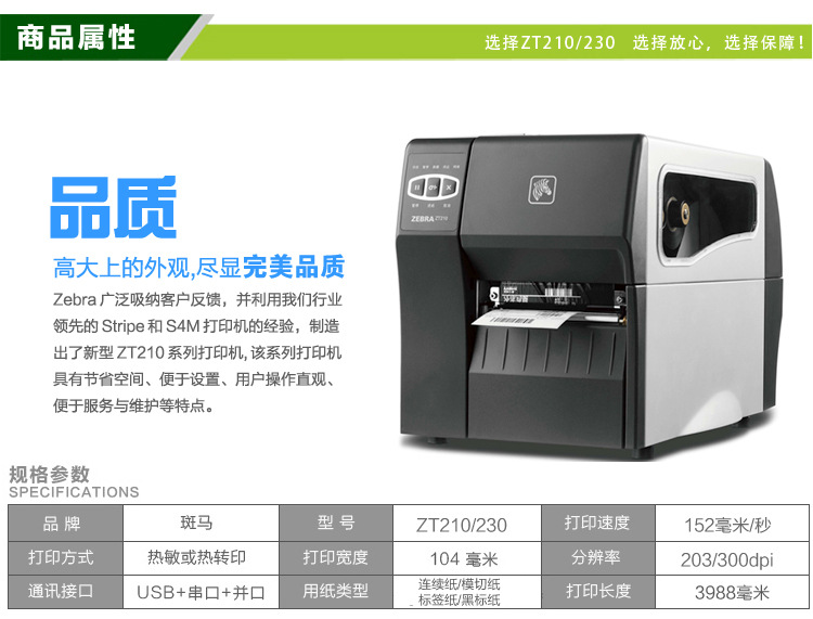 斑馬打印機(jī)驅(qū)動下載打印方式熱敏或熱轉(zhuǎn)換條碼打印機(jī)分辨率300dpi打印速度152mm/s打印寬度114mm最大打印長度991mm19.4-1140.076-0.25mm碳帶長度450000mm碳帶寬度40-110內(nèi)存標(biāo)配:128MB RAM;128MB 閃存接口類型串行RS-232,USB2.0100/2405-40℃(熱轉(zhuǎn)換)0-40℃(熱敏)20-80%非冷凝-40-60℃5-85%非冷凝黑色9.1kg242×277×432
