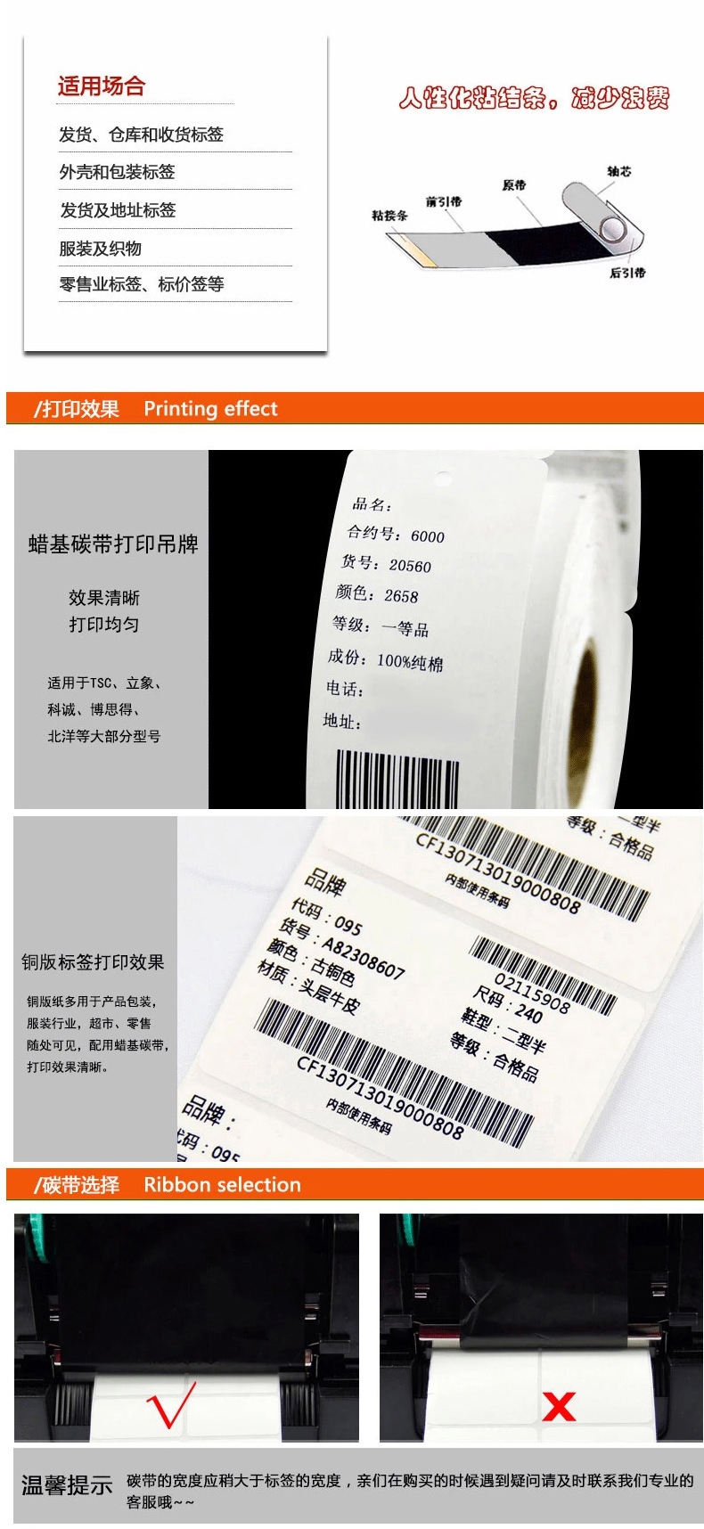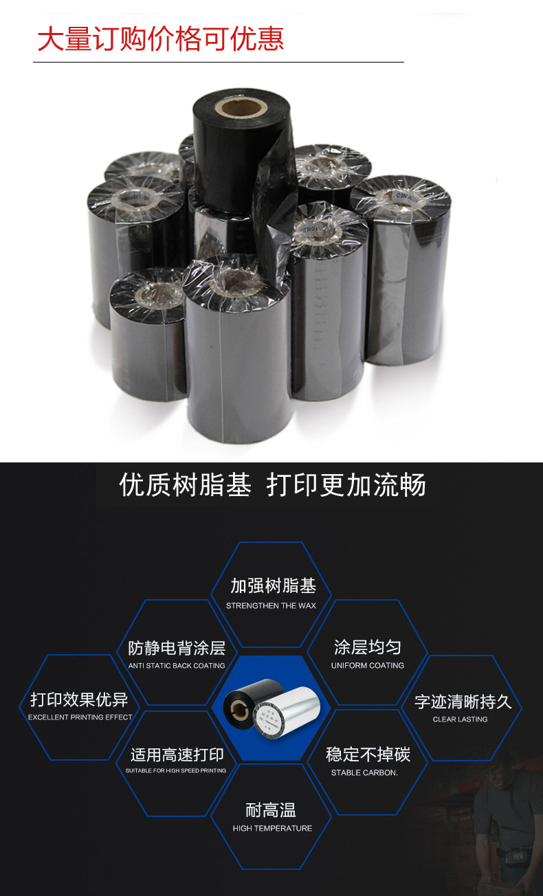 樹脂基碳帶即以蠟和碳黑(假設(shè)為黑色碳帶)為主要材料,作為涂層材料的產(chǎn)品。樹脂基碳帶是最經(jīng)濟(jì)的碳帶,主要用于一般紙張的打印,使用樹脂基碳帶必須注意的是與紙張的配合,樹脂基碳帶使用用于表面手感上略有凹凸的材質(zhì)。樹脂基碳帶約占有市場的70%左右份額,是一般打印麥頭等大型紙張標(biāo)簽常用的產(chǎn)品。