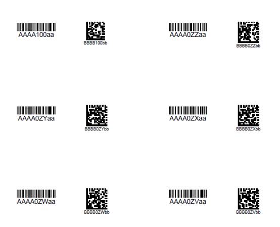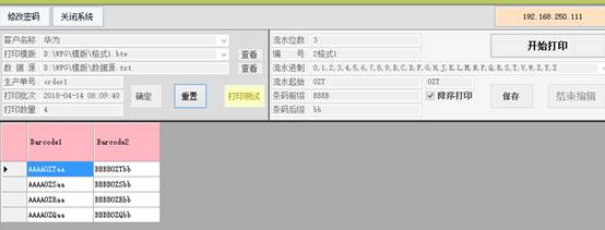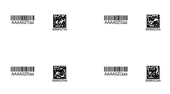 如圖,有個條碼,起始條碼分別是:AAAA100aa,BBBB100bb,100是流水號部分,流水號采用的33進(jìn)制,2個條碼都有前后綴。