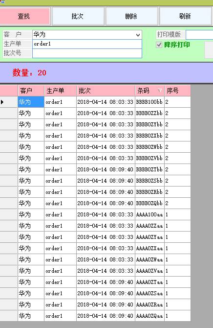 可以按客戶、批次、按生產(chǎn)單、查詢打印過的數(shù)據(jù)。